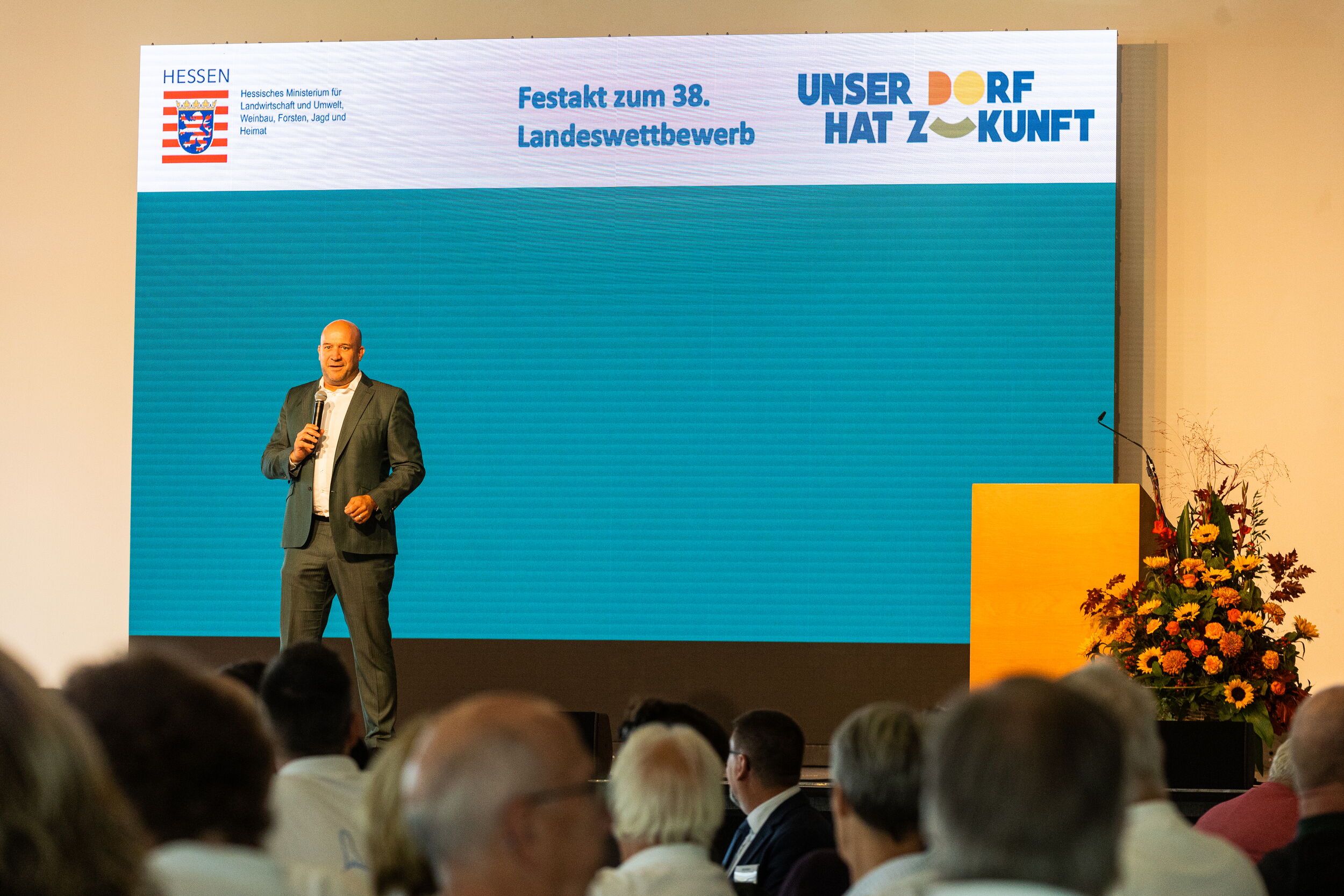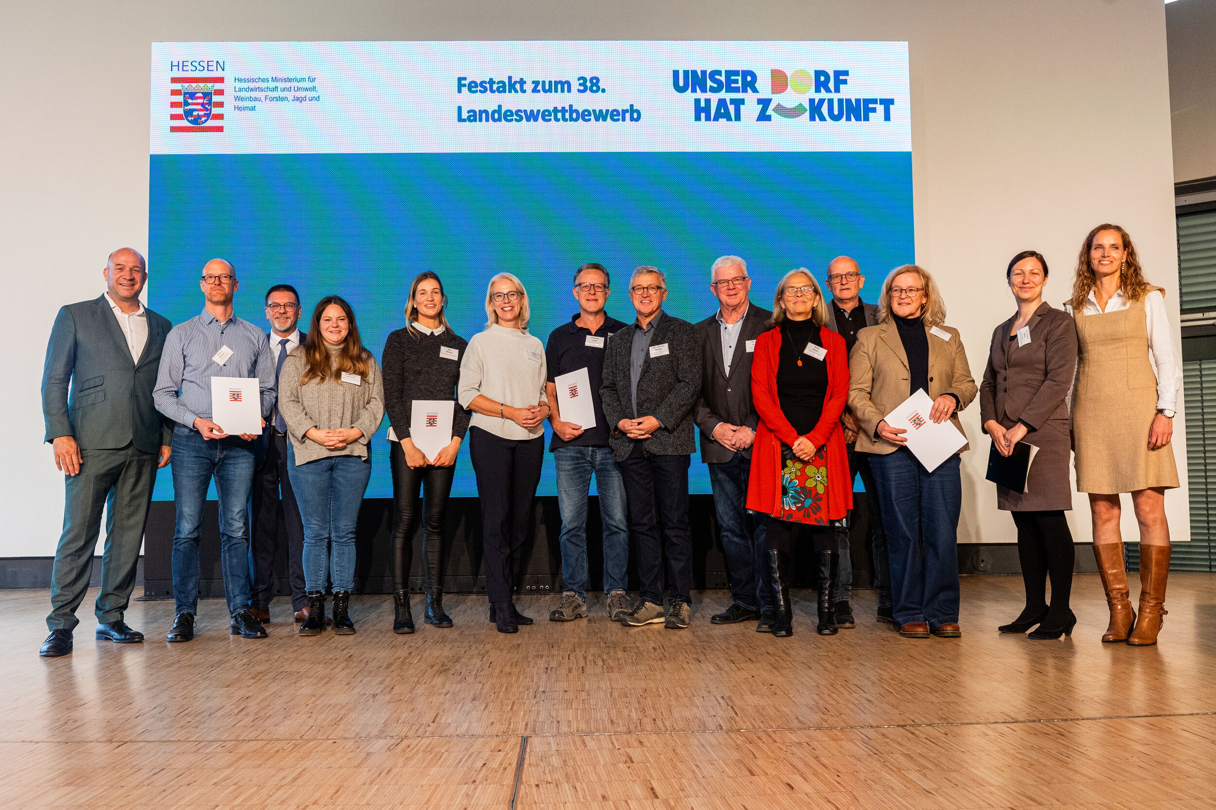 Bei einem feierlichen Festakt wurden am Freitag, den 24. Oktober 2025, die Sieger des Landeswettbewerbs "Unser Dorf hat Zukunft" ausgezeichnet. Mit unserer Expertise im Veranstaltungsmanagement haben wir – gemeinsam mit dem Hessischen Ministerium für Landwirtschaft und Umwelt, Weinbau, Forsten, Jagd und Heimat sowie dem Regierungspräsidium Kassel – für eine erfolgreiche Preisverleihung gesorgt.
