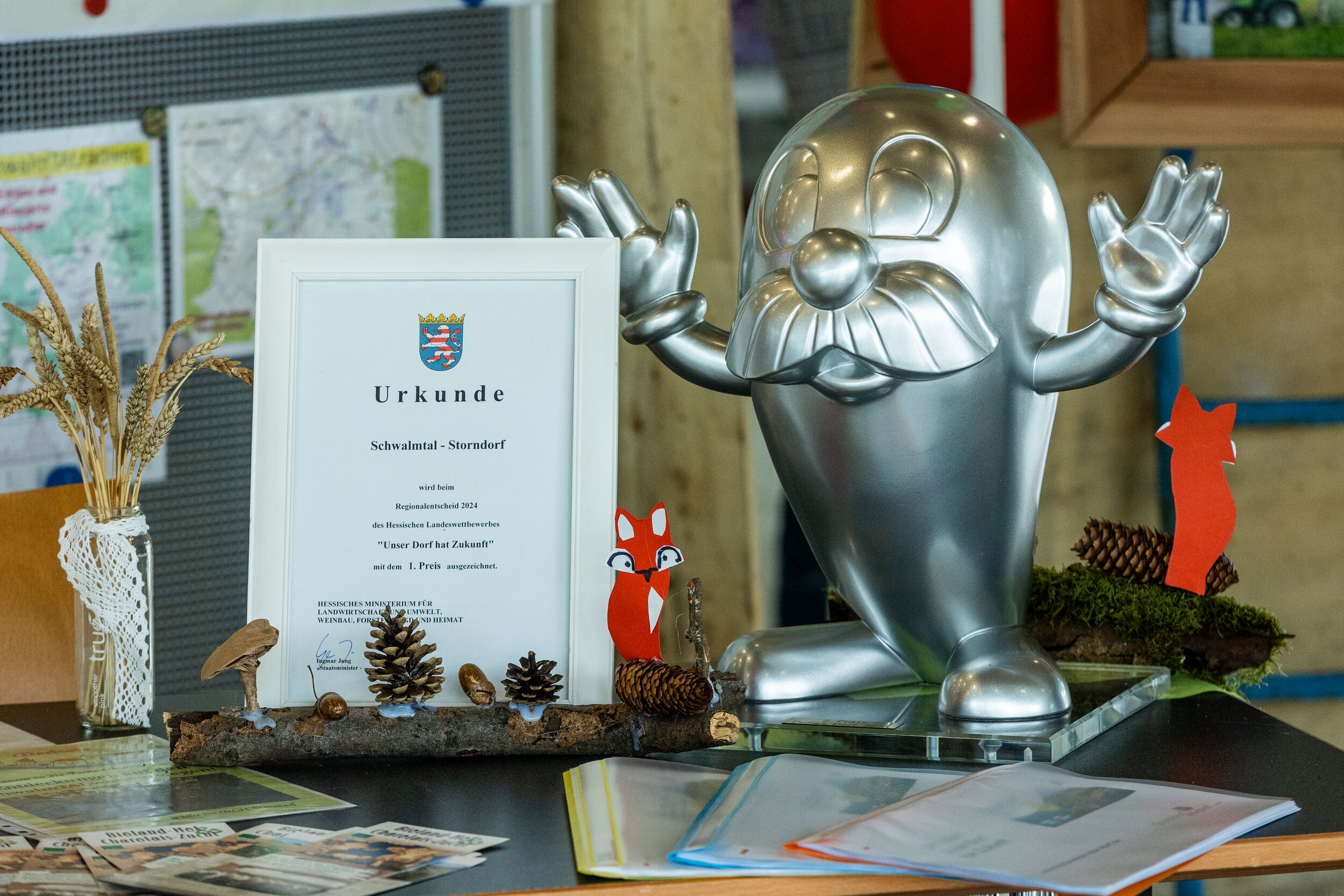 Die Preisverleihung war nicht nur ein feierlicher Höhepunkt, sondern zugleich ein Tag des lebendigen Austausches. Auf dem toll geschmückten „Marktplatz der Dörfer“ präsentierten sich die teilnehmenden Orte. An liebevoll gestalteten Ständen zeigte sich die Vielfalt des Dorflebens und welche Aktivitäten bzw. Projekte im Rahmen der Jury-Besuche entstanden sind. So konnten die Teilnehmenden des Festakts spüren und sehen, mit wie viel Herzblut, Kreativität und Zusammenhalt die Dorfgemeinschaften an ihren Ideen arbeiten.